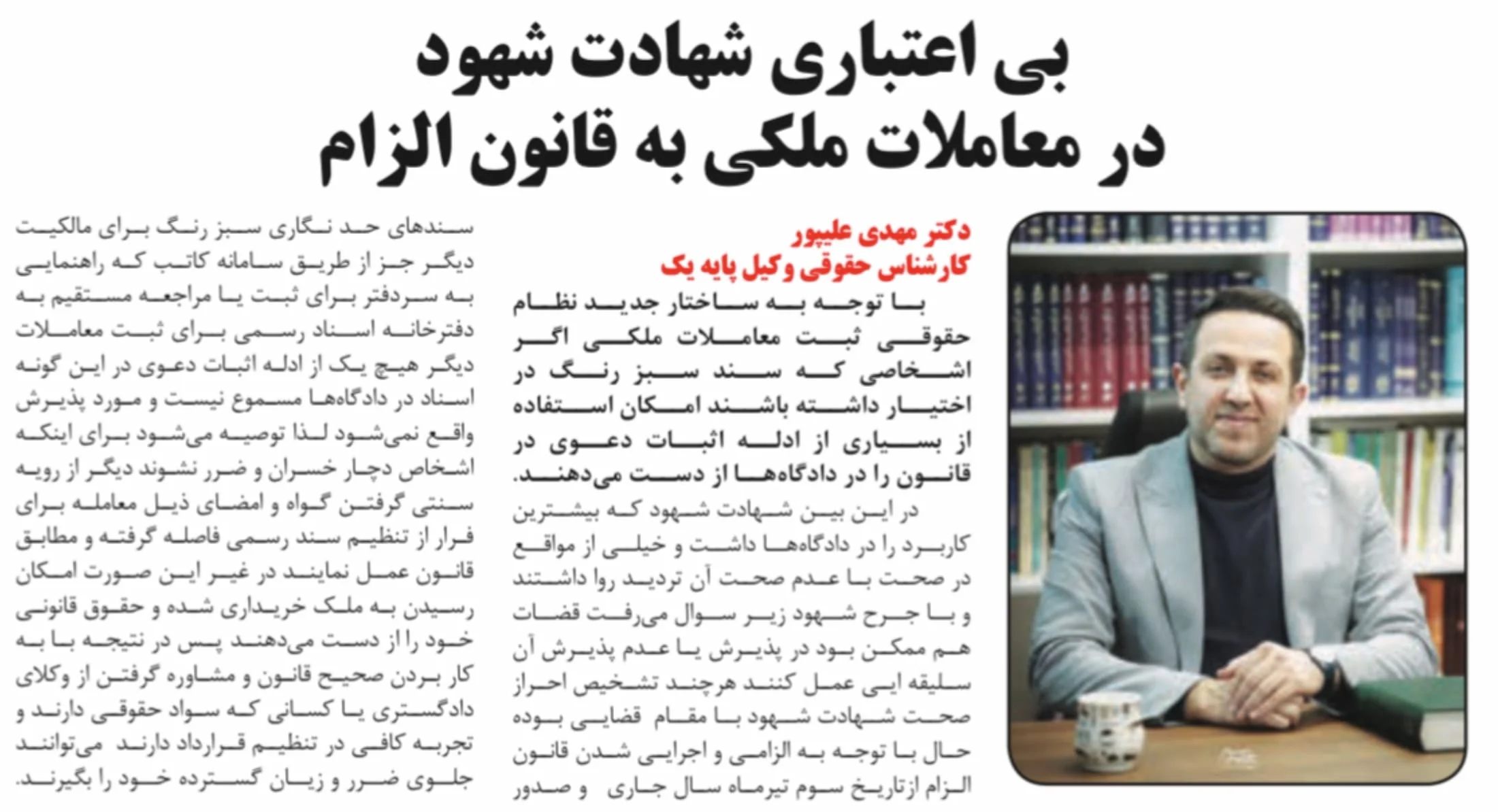 روزنامه ها منتخب گفتوگوها و مصاحبههای دکتر مهدی علیپور با روزنامهها و رسانههای معتبر کشور که به بررسی دیدگاهها و تخصص ایشان در حوزه های حقوقی میپردازند.